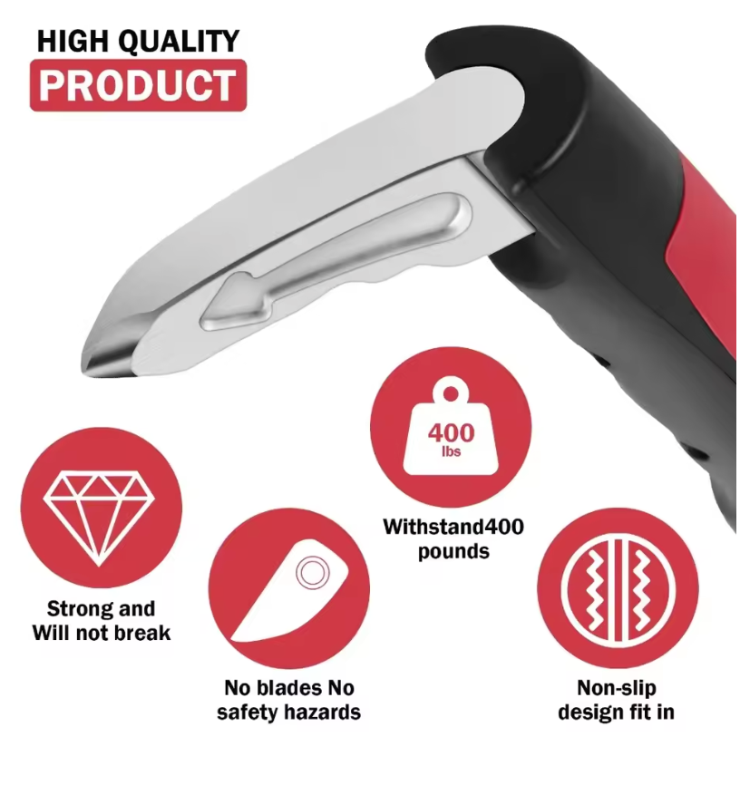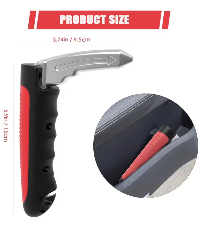 Funktioner: Ergonomisk skridsikkert greb, krog til U-formet dørstolpe, bærbar design, nød-funktion som vinduesknuser