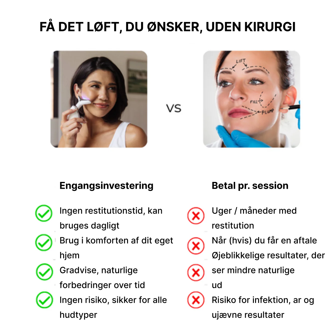 Oplev synligt løft, udglatning og hudforyngelse – uden nåle, helingstid eller dyre spa-besøg.