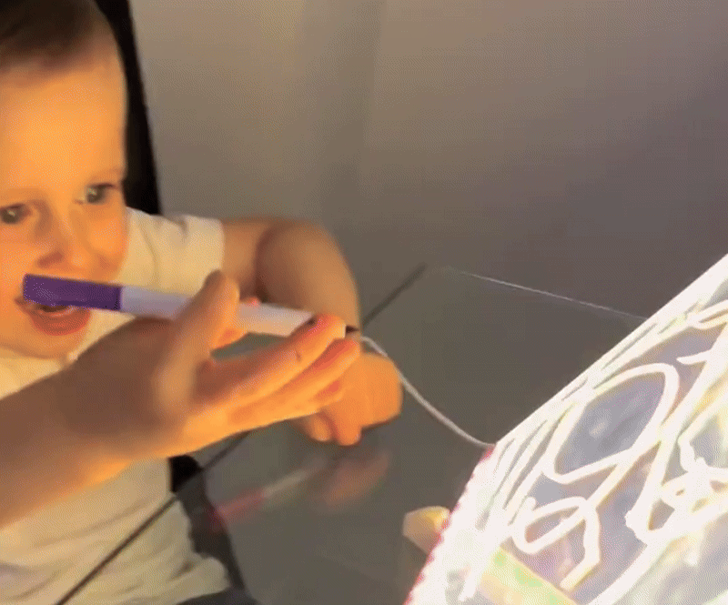 LumiBoard™ gør hver tegning til et glødende kunstværk – perfekt til leg, hobbyprojekter eller hyggelige stunder.