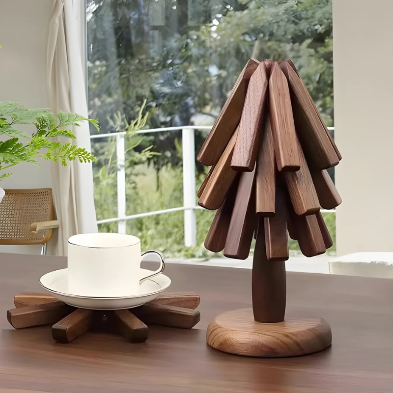 Fremstillet af førsteklasses valnød og bøg kombinerer Trivetree™ hverdagsprakti med tidløst design. Elsket af tusindvis af miljøbevidste hjem leverer det pålidelig varmebeskyttelse uden at gå på kompromis med stilen. Uanset om det er til familiemiddage eller gæster, holder Trivetree™ overflader sikre, mens det forskønner din indretning.